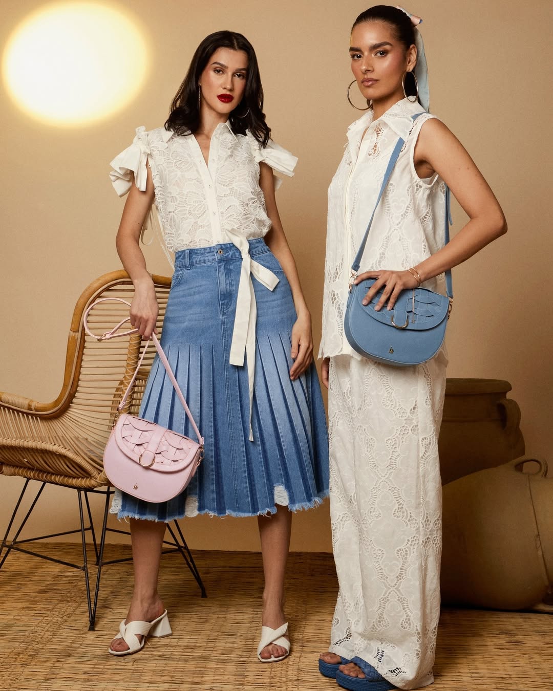 Pair a romantic, flowy blouse with high-waisted jeans for an elegant yet casual summer look. Add block heels or sneakers to complete the outfit, and finish with a small crossbody bag for a laid-back chic look.